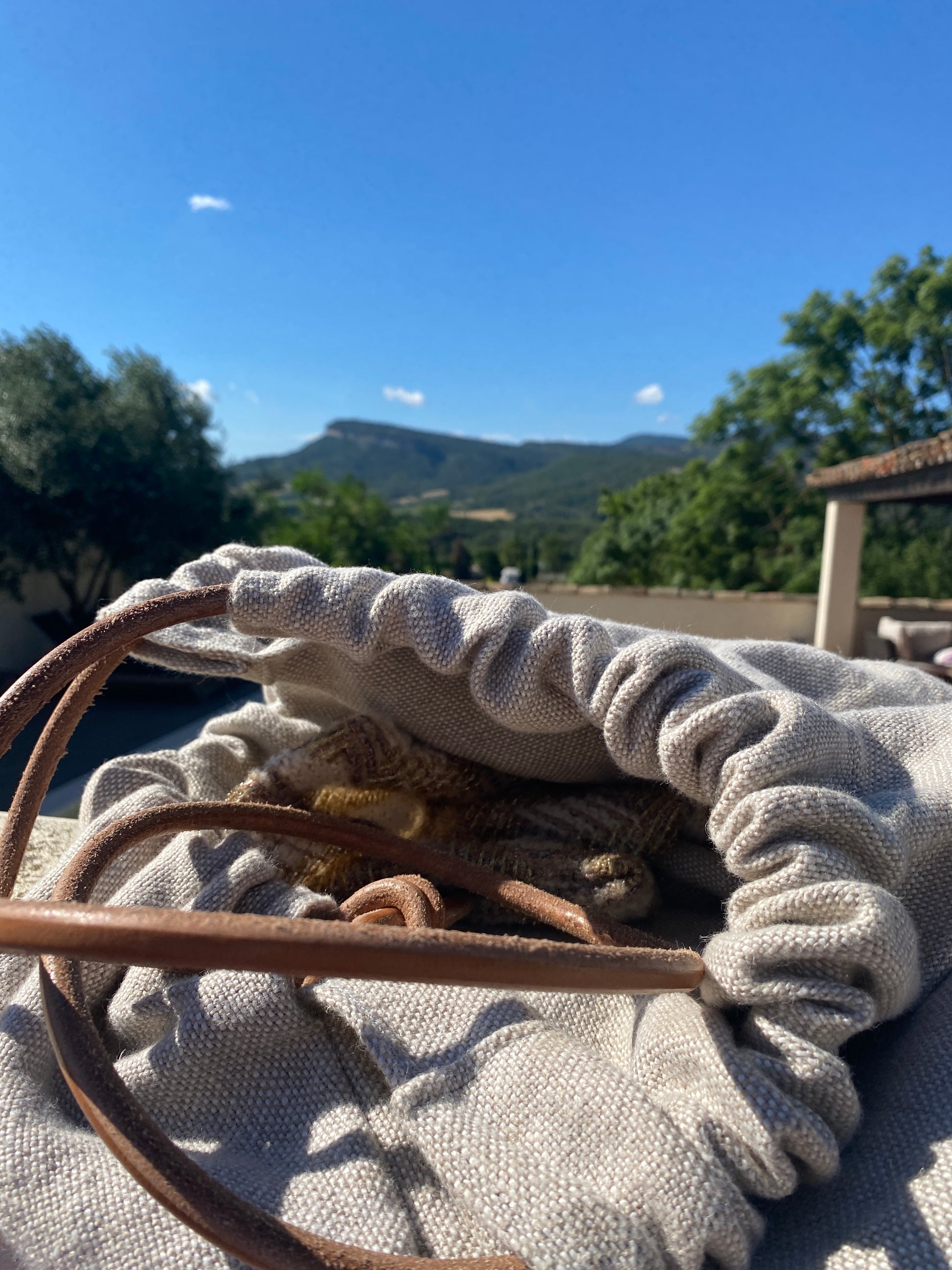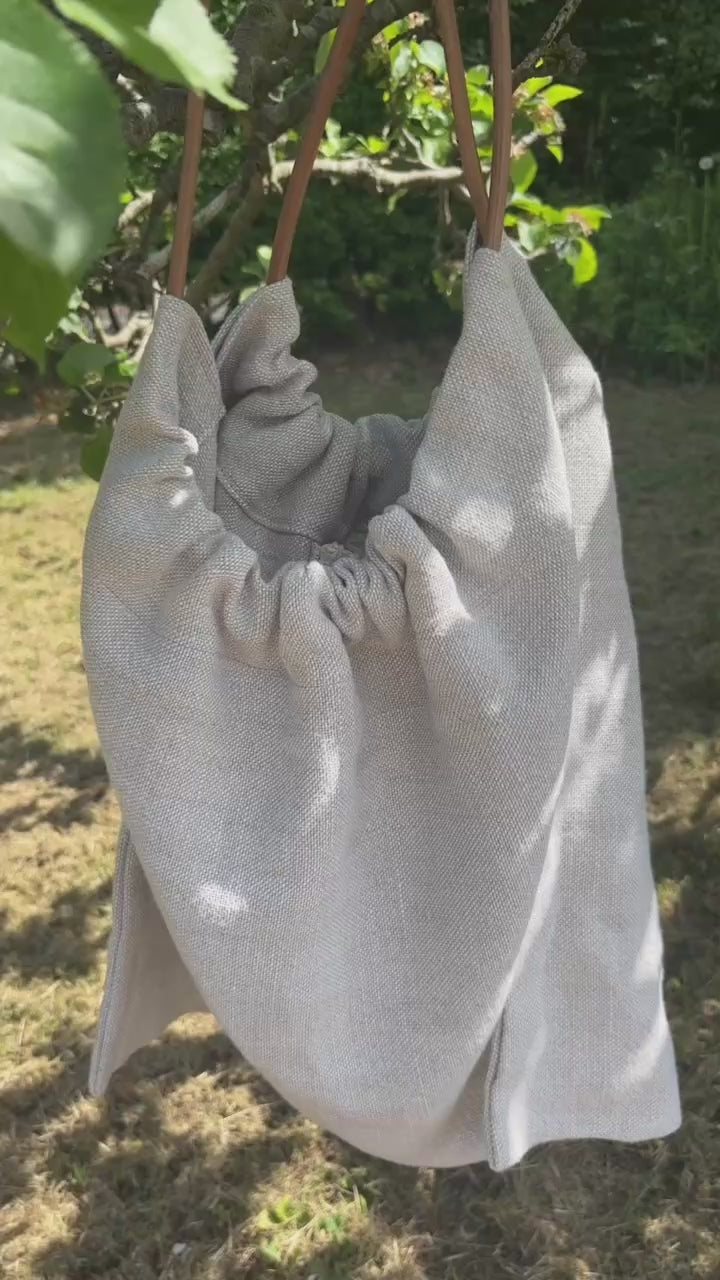 Handmade in a beautiful heavy Irish linen this bag is perfect for weekends away, holidays, even as a swim bag. The leather strap is sourced locally by a Master saddler and inside the bag is a beautiful pocket made of a remnant of couture tweed big enough for your phone and keys. The Irish linen will soften with age as will the beautiful piece of leather.