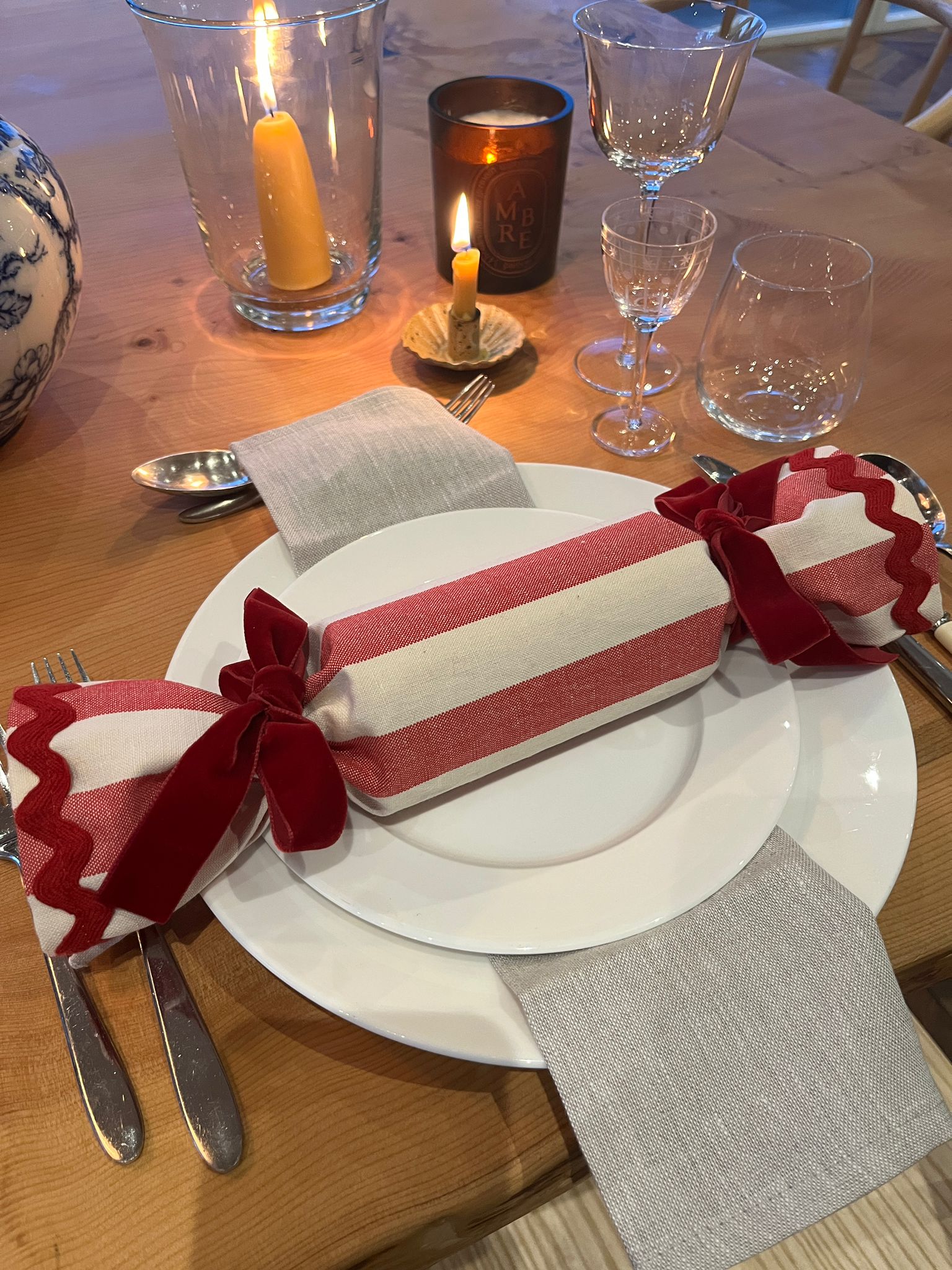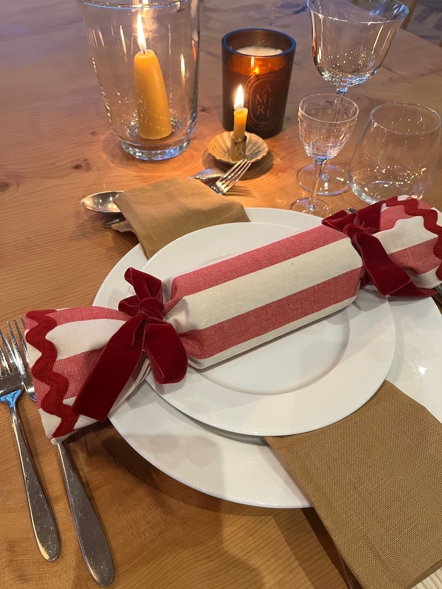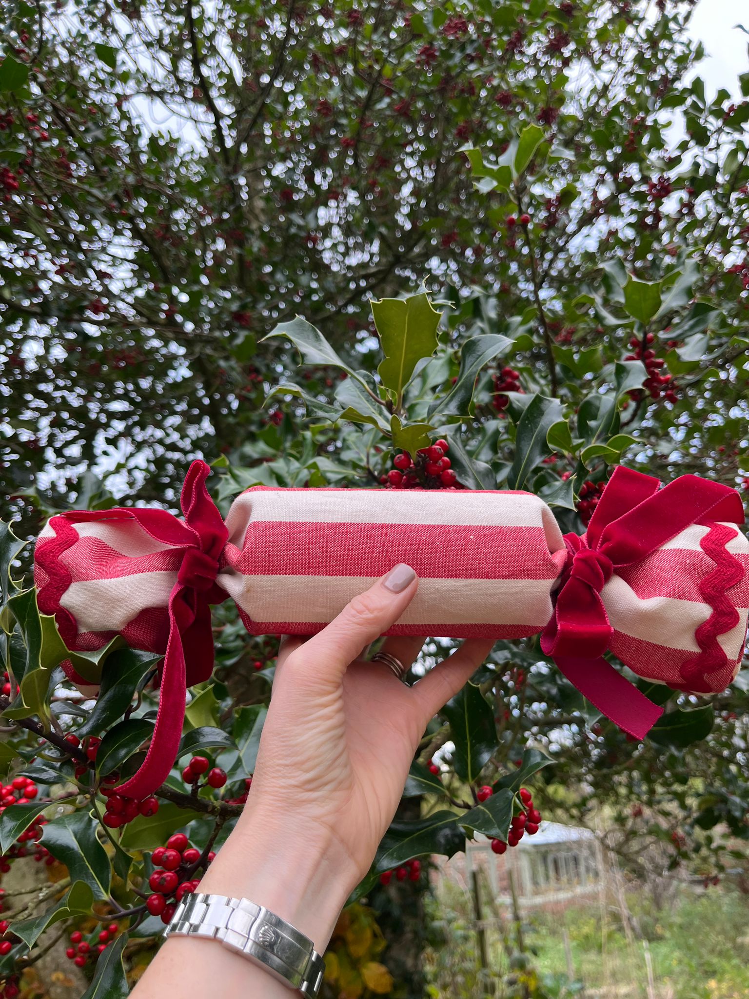 Buying these fabulous crackers not only reduces the cracker waste ending up in landfill every year but it will also adorn your Christmas and holiday tables year after year. The fabric when unravelled becomes a napkin should you wish to use to this way.