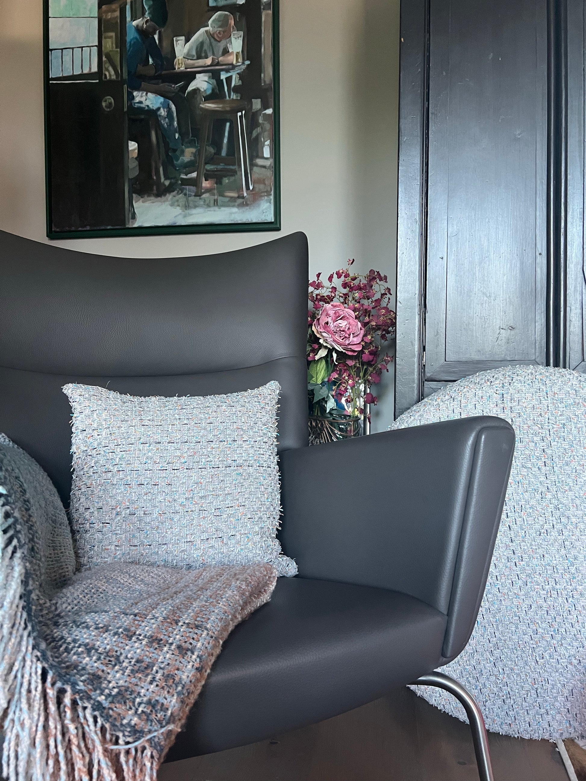 The Mermaid couture cushion is a fabulous textured tweed in soft neutral and pastel colours, adding a very elegant and sophisticated look to your room